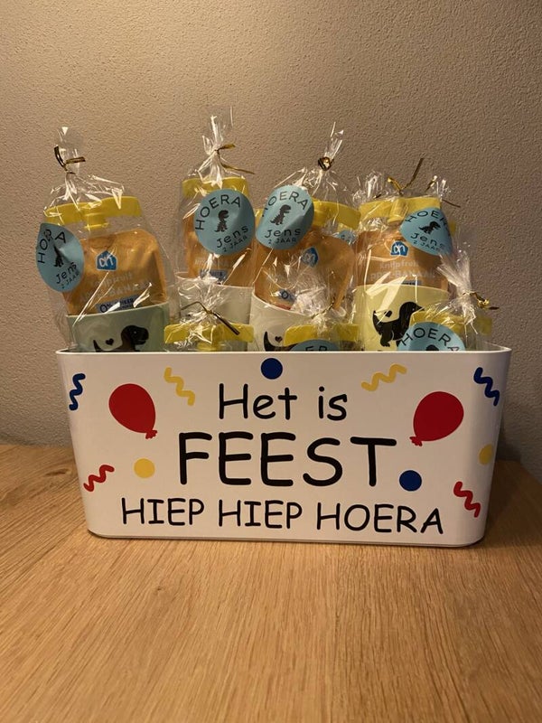 Gaat je kindje trakteren? Bestel dan deze leuke stickers om zelf een traktatiebak te maken. Voor deze stickers is de UPPDATERA bak, wit, 34x24 cm - IKEA gebruikt.