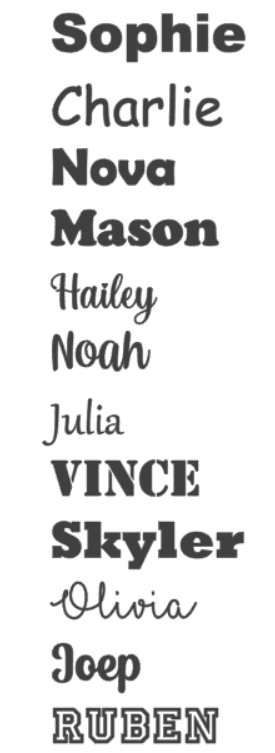 ✏️ Let op: Hoe langer de naam, hoe kleiner de bedrukte letters.