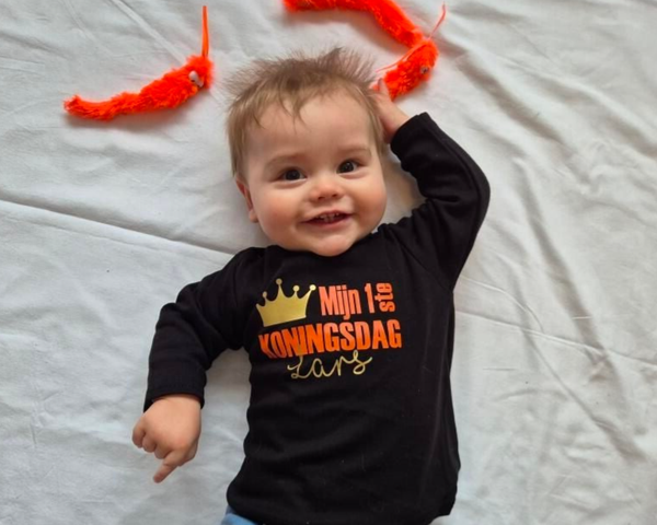 Maakt jouw kindje dit jaar zijn of haar eerste koningsdag mee? Laat hem/haar dan shinen met dit T-shirt op maat met eigen naam.