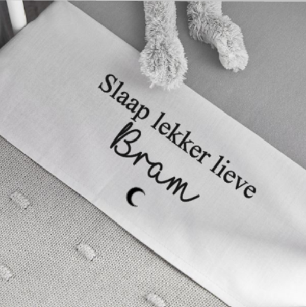 Maak de tekst niet te lang, bijvoorbeeld Slaap lekker, Droom zacht enz. Geen tekst of naam? Vul dan X in