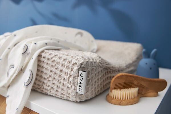 Tip: leg een Meyco Baby hydrofiele doek op het aankleedkussen, zodat je de hoes niet bij elk ongelukje hoeft te wassen.