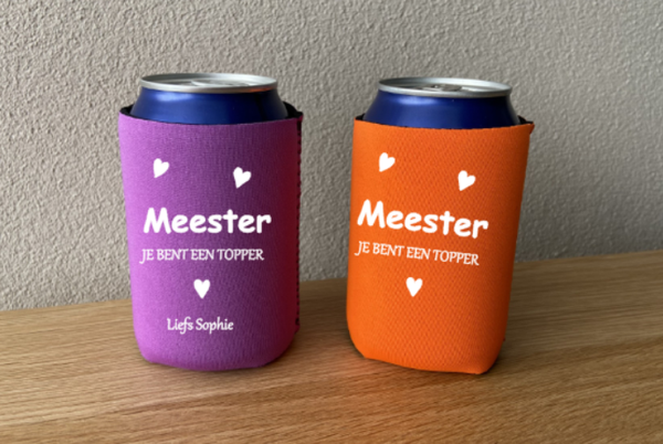 Personaliseer jouw blikjes hoes voor een extra persoonlijke touch! Je kunt het hoesje laten bedrukken met de naam van de afzender, wat het cadeau nog specialer maakt. Perfect voor het einde van het schooljaar, als traktatie, en natuurlijk voor speciale dagen zoals Vaderdag en Moederdag.