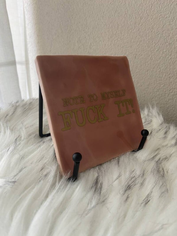 Of je nu een grappige quote, inspirerende spreuk of een persoonlijk cadeautje een mooi plekje wilt geven: met deze metalen standaard komt je tegeltje helemaal tot z’n recht.