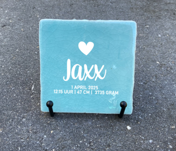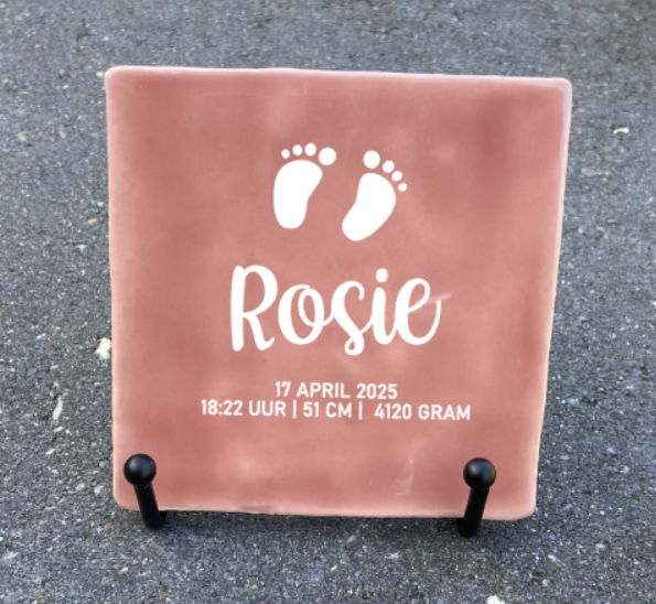 Dit keramische tegeltje met de geboortegegevens is het perfecte cadeau voor de geboorte van een baby.