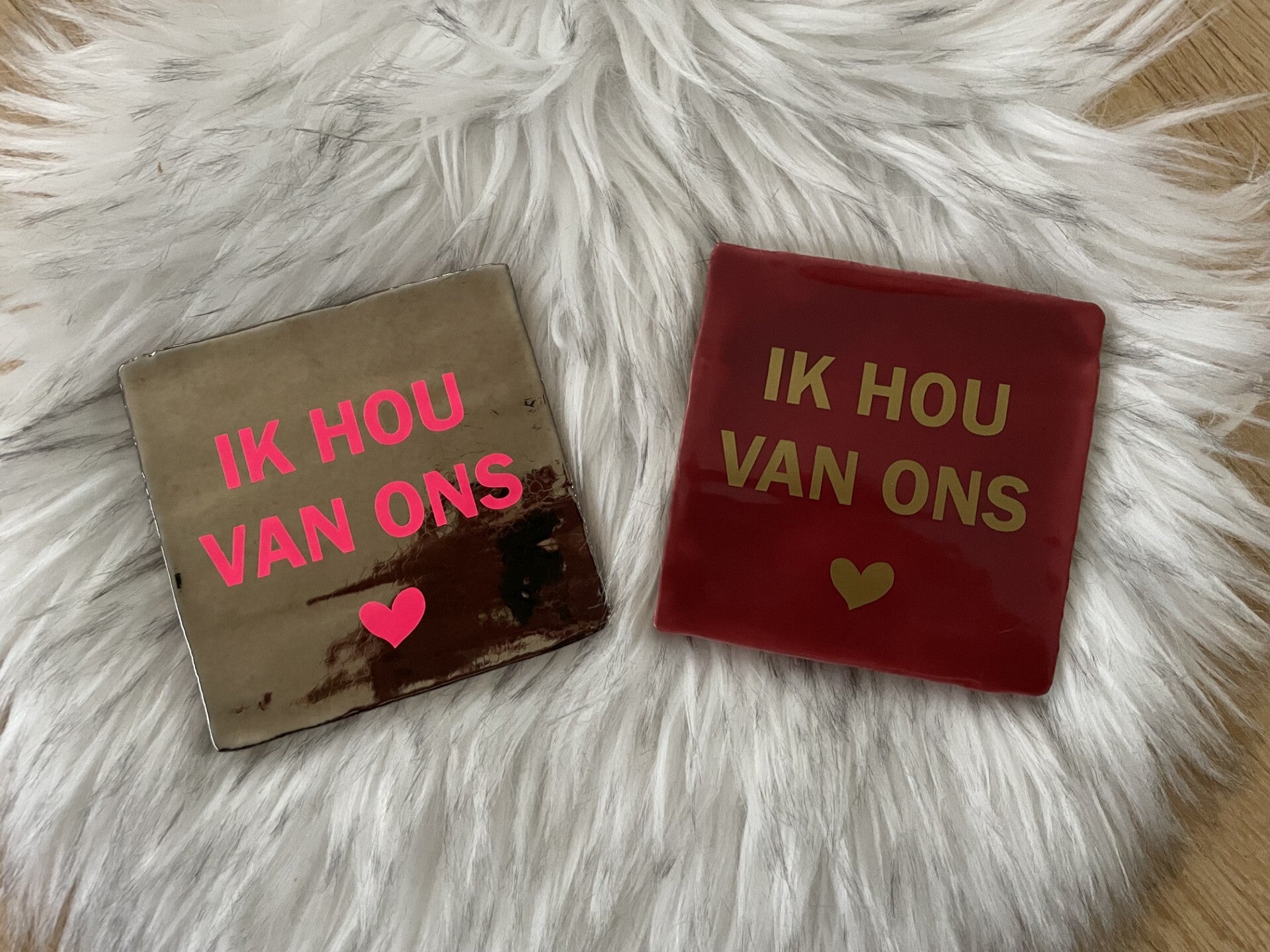 Breng warmte en liefde in huis met dit sfeervolle tegeltje met de tekst "Ik hou van ons". Een subtiele en stijlvolle manier om te laten zien hoeveel je om elkaar geeft. Perfect als cadeau voor je partner, een huwelijksjubileum of gewoon als dagelijkse herinnering aan jullie liefde.