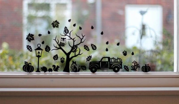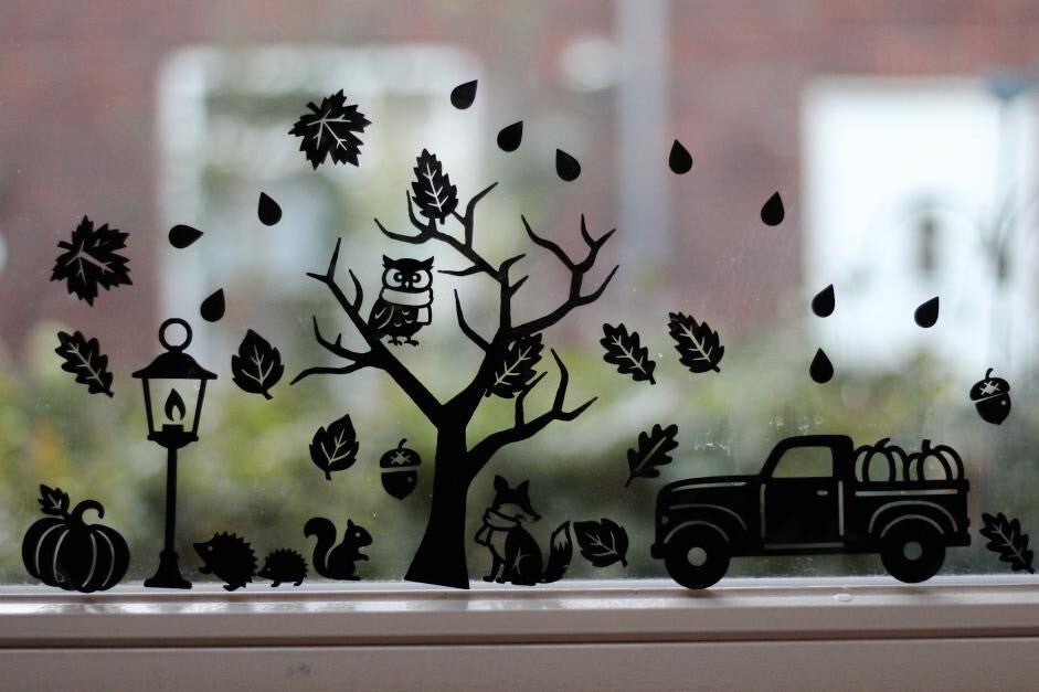 Creëer eenvoudig een warme herfstsfeer in huis of op de opvang met deze veelzijdige en decoratieve raamstickers!