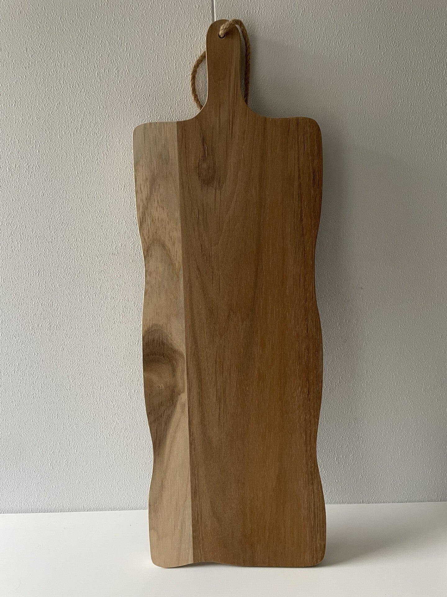 Breng stijl en tafel met deze prachtige serveerplank van teakhout met handvat. Gemaakt van hoogwaardig natuurlijk teakhout, is deze plank niet alleen functioneel, maar ook een echte blikvanger tijdens borrels, diners of als decoratief item in je keuken. Kies een gravure uit onze etalage ( bijna alles is aanpasbaar zodat het op de plank past) of geef je eigen wensen door. Omschrijf bij het bestellen duidelijk wat je wilt. Wij maken dan een ontwerp die je per mail ontvangt ( check ook je spam map) verkrijgbaar in twee formaten: