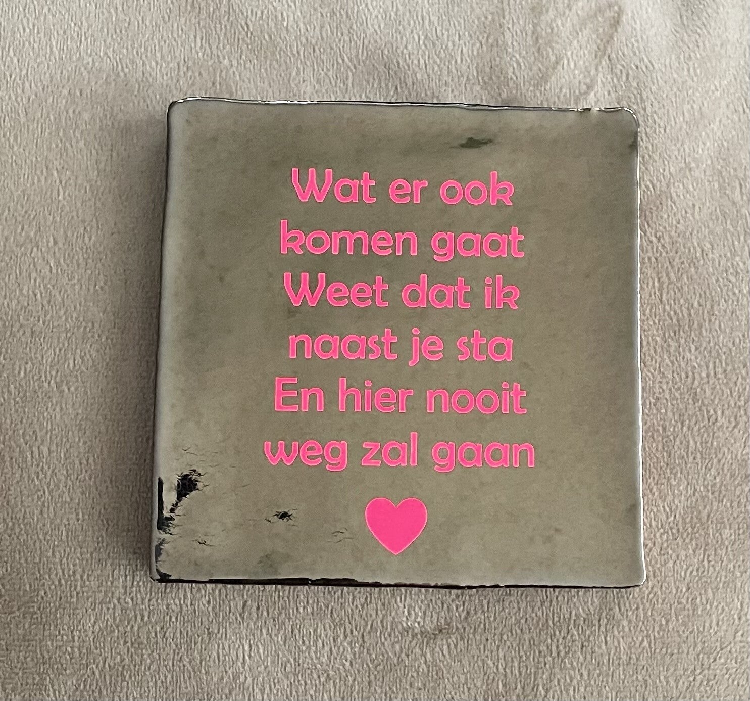 Breng warmte en liefde in huis met dit sfeervolle tegeltje met de tekst. Steun iemand die een zware tijd tegemoed gaat, heeft gehad of die je gewoon wilt laten weten dat je er altijd bent.