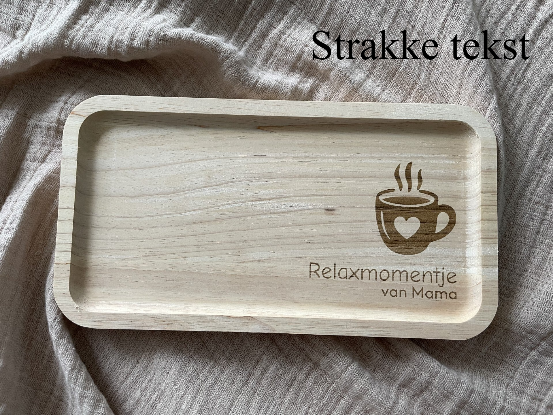 TIP: Combineer het plankje met een gegraveerd kopje. Een setje wordt indien gewenst ingepakt zodat het klaar is om weg te geven. Geef gerust aan voor welke gelegenheid het is. Standaard wordt dit plankje zonder kopje geleverd.