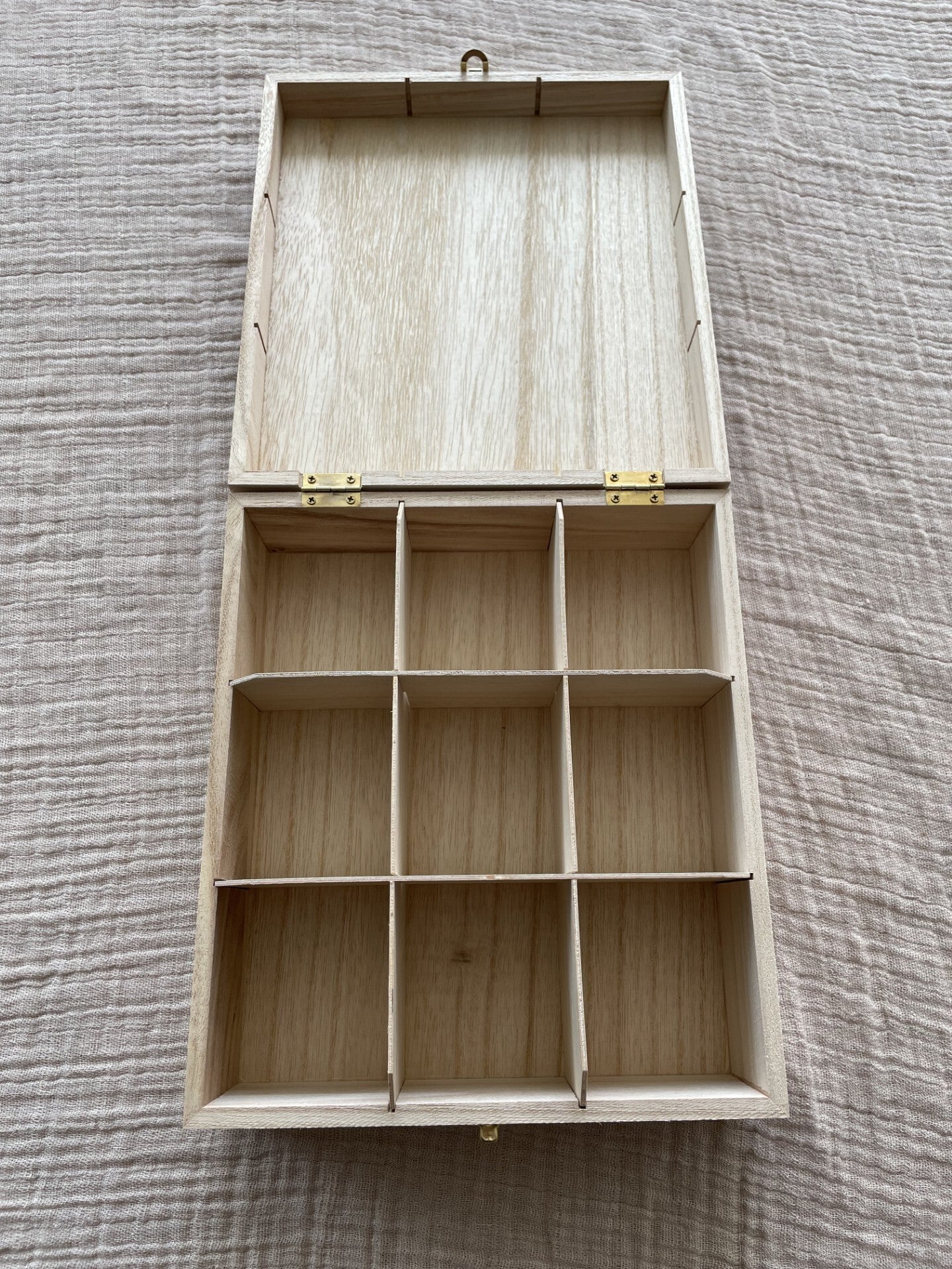 De theedoos is gemaakt van hout en heeft een natuurlijke uitstraling die in iedere keuken of theehoek past. Binnenin zitten 9 vakjes, zodat verschillende soorten theezakjes netjes en overzichtelijk bewaard kunnen worden.